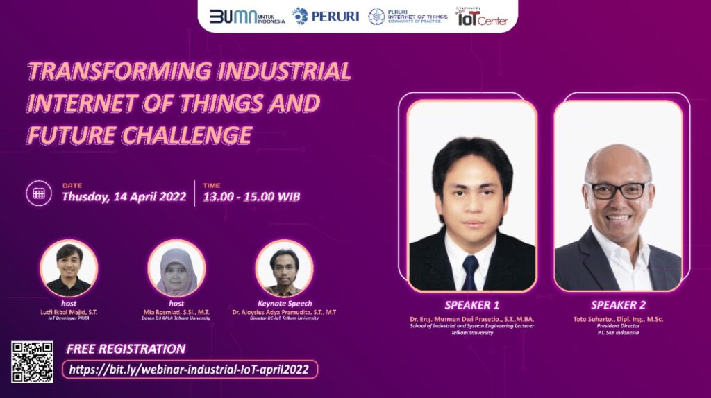 Aktivitas webinar Transforming Industrial Internet of Things and Future Challenge merupakan webinar mengenai peranan IoT di bidang industri, yang mana secara tidak langsung akan membentuk bagaimana peradaban kedepannya. Dengan bapak Dr. Eng. Murman Dwi Prasetio., S.T., M.BA., dan Toto Suhatro,. Dipl. Ing., M.Sc. Pasti menarik sekali ayo bergabung bersama kami!